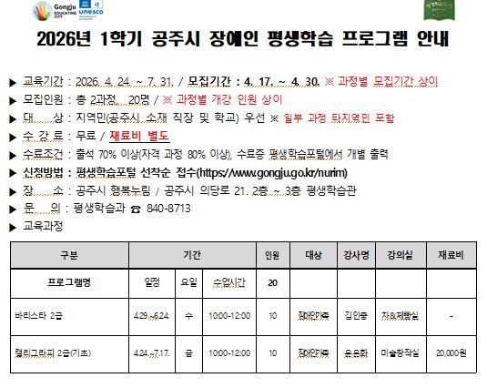 [장애인 가족을 위한 자격과정 프로그램 학습자 모집] 공지사항 < 알림마당 < 평생학습관 < 공주시 행복누림